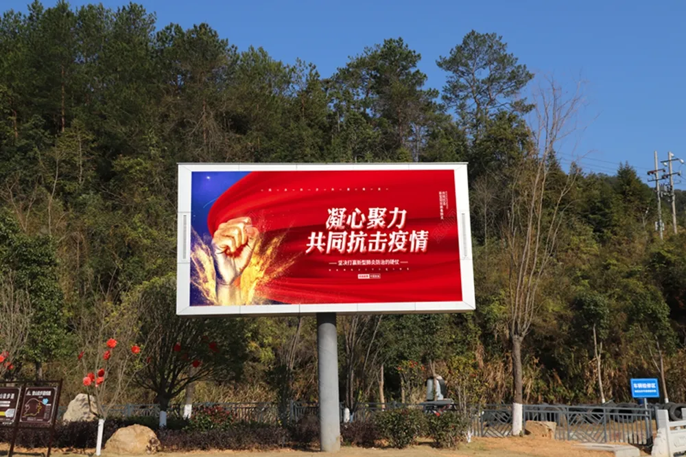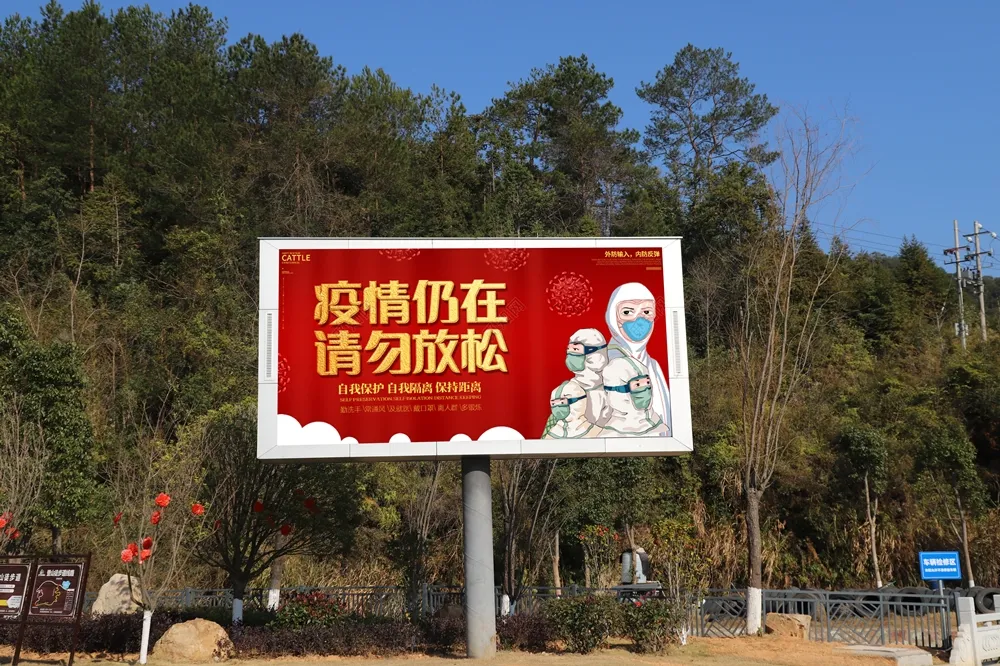 在景区入口、沿路建筑等醒目位置张贴宣传标语,并用LED屏循环播放宣传疫情防控的要求、常识和注意事项的影片。