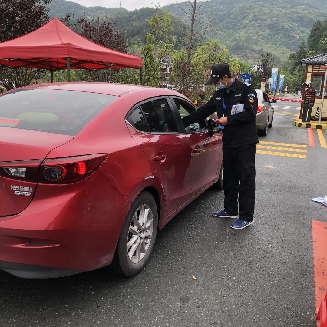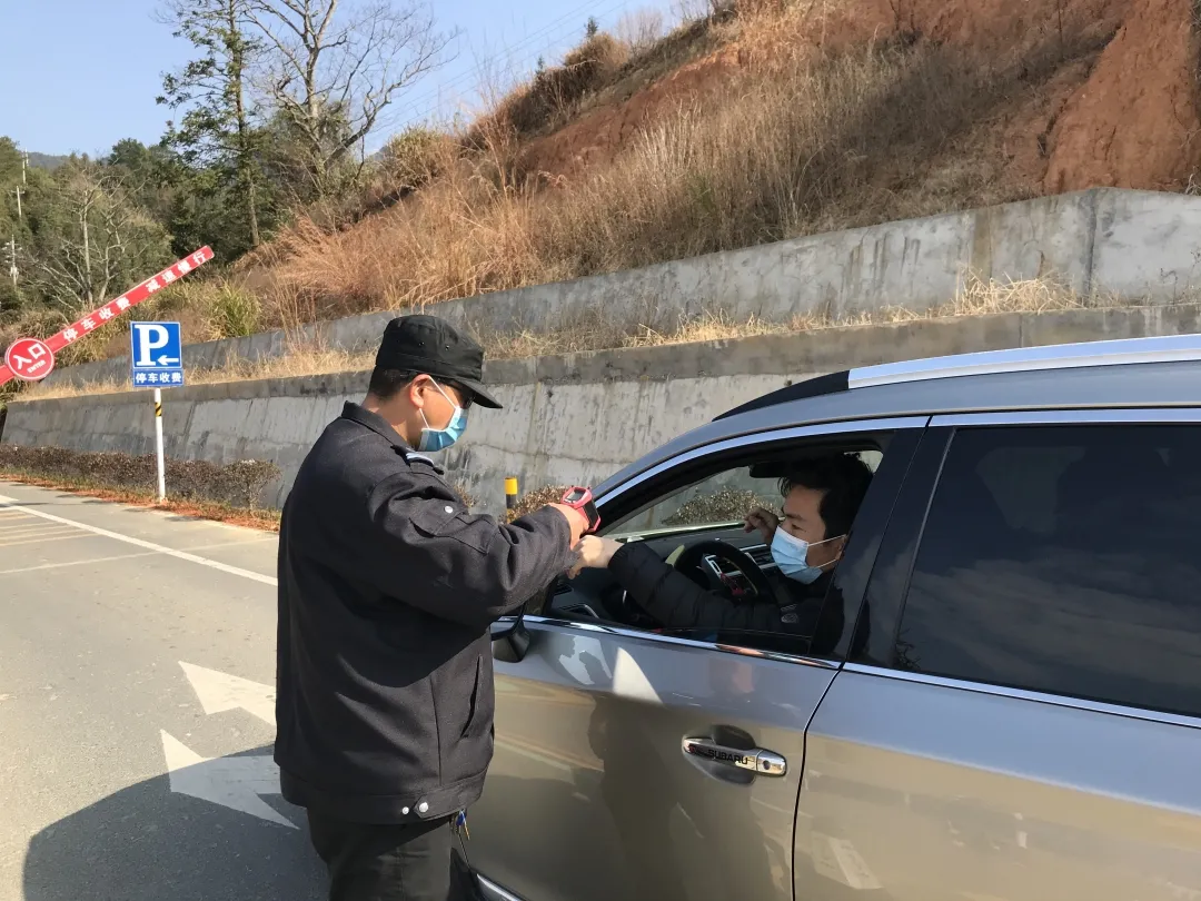 景区在停车场入口岗亭设置了第一道体温测量点。