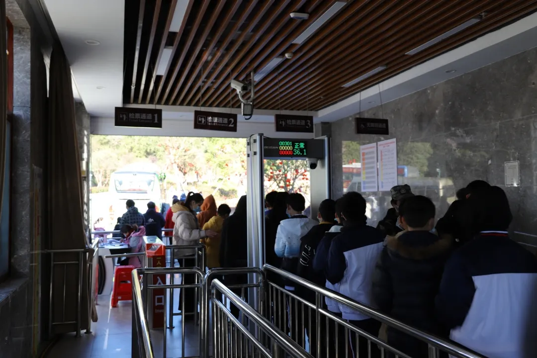 在候车大厅检票处安装了体温安检门进行第二道体温筛查。