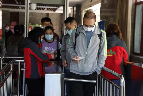 景区严格实行“一日一进一测一登记”制度,员工进入景区前须进行体温检测,并记录。按照属地要求做好员工健康监测管理。