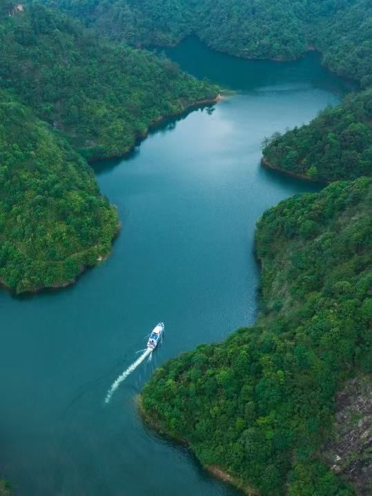 Восточно-ветреное озеро похоже на сверкающую жемчужину, вставленную в пейзажную зону. Вода озера прозрачна, как зеркало, отражающее зелёные холмы и зелёные деревья на обоих берегах, и совершающее круиз, как будто находящийся в поэтической живописи.