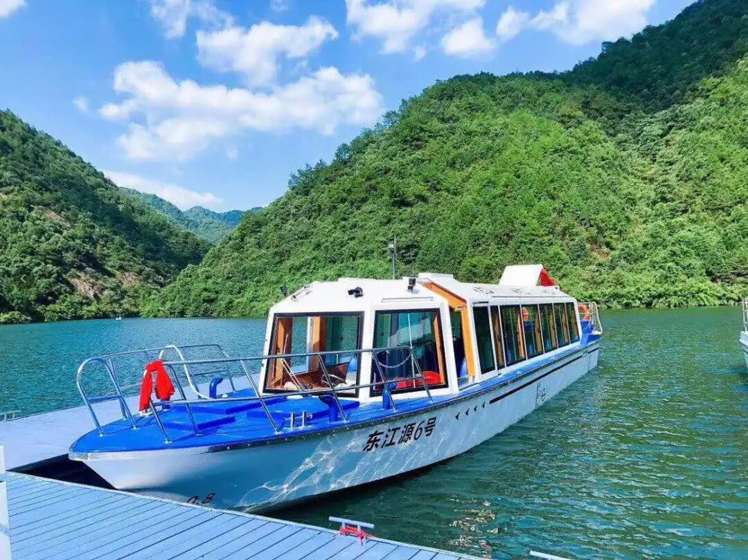 부두에서 배를 타고 수면에서 뱃놀이를 체험하다