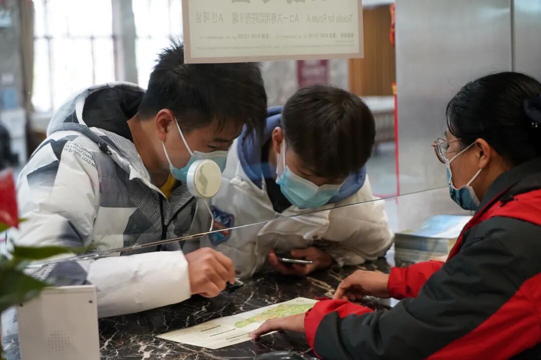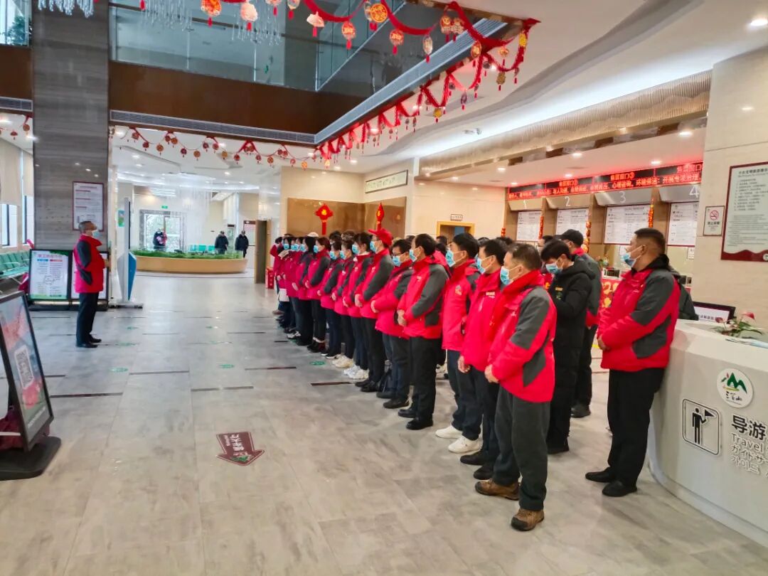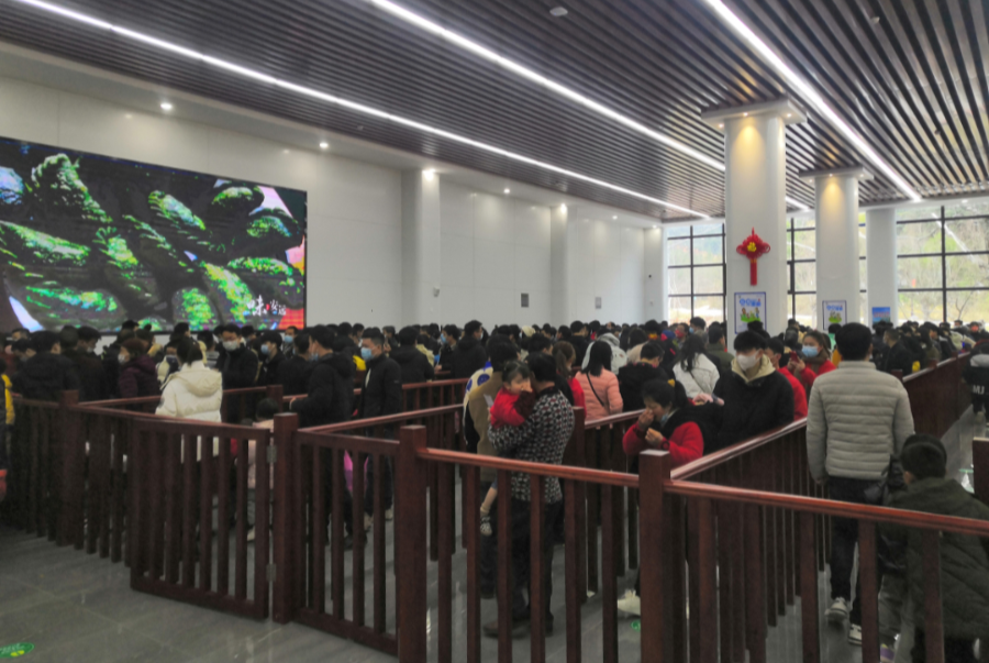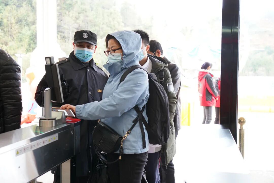설날에 관광객이 끊임없이 폭증하기 때문에 가능한 한 빨리 관광객들의 신속한 입장 유도를 위해 매표소 입구에 여러 명의 관광지 직원과 자원봉사자를 배치하여 관광객들이 마스크를 잘 쓰고 코드를 스캔하여'간강통코드, 스케줄코드'와 표를 사는 등 자문 서비스를 제공하도록 유도한다.