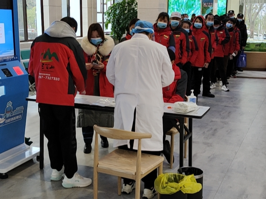 △관광지 직원은 요구에 따라 정기적으로 핵산 검사를 진행한다.