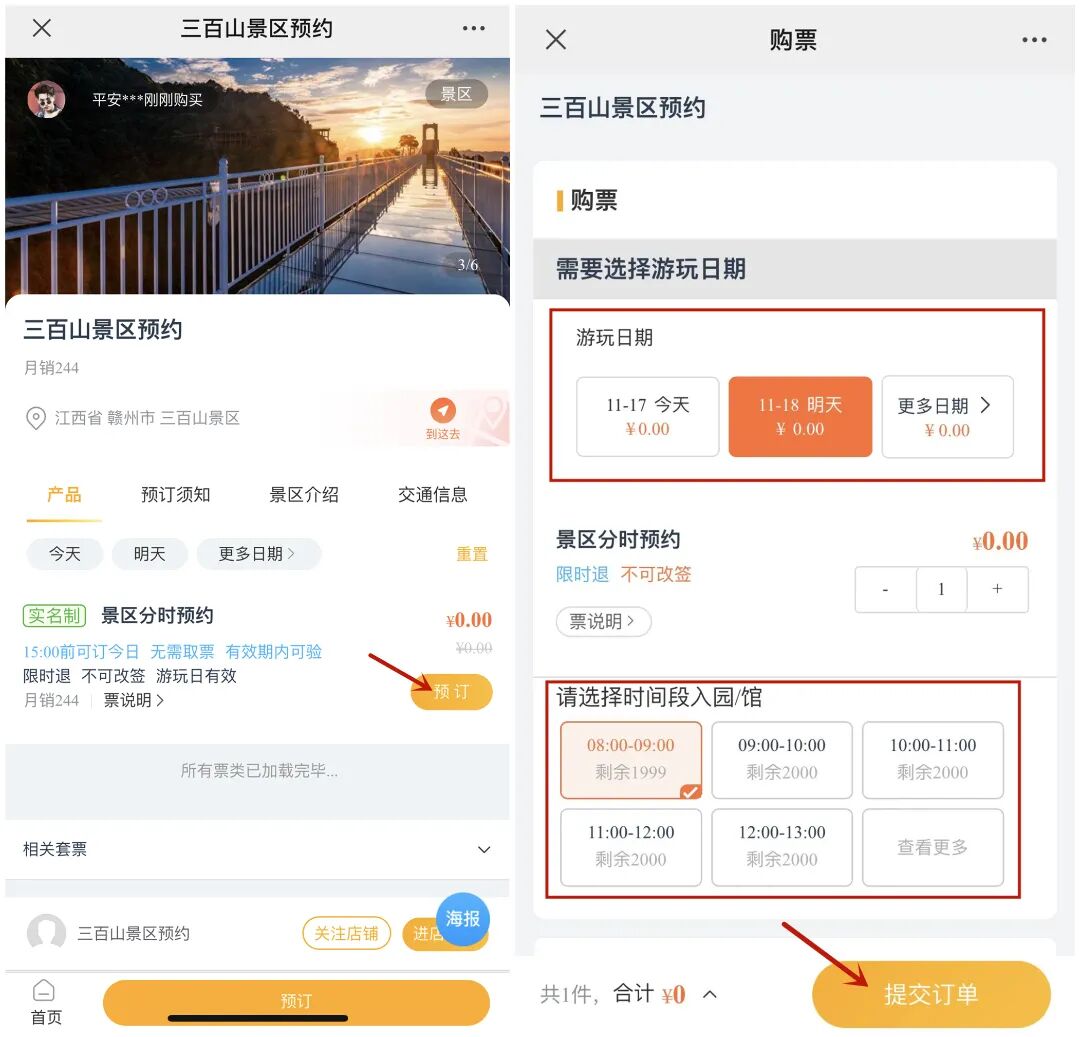 景区营业时间: 8:00-17:30(夏) 8:00-17:00(冬) 1.进入景区做好防护措施,佩戴口罩,向工作人员出示赣通码、行程码,春节期间暂不接待来自中高风险地区的游客; 2.请提前关注景区天气、路况,根据温度变化,增减衣物; 3.建议出游自备雨伞、太阳镜、防晒霜、感冒药品等出行用品; 4.做好个人防护,避免扎堆,错峰游览; 5.请提前在景区公众号“服务中心”“入园预约”进行预约,并在官网购票。 ▲ 扫描二维码购票 ▲ 扫描出示赣通码
