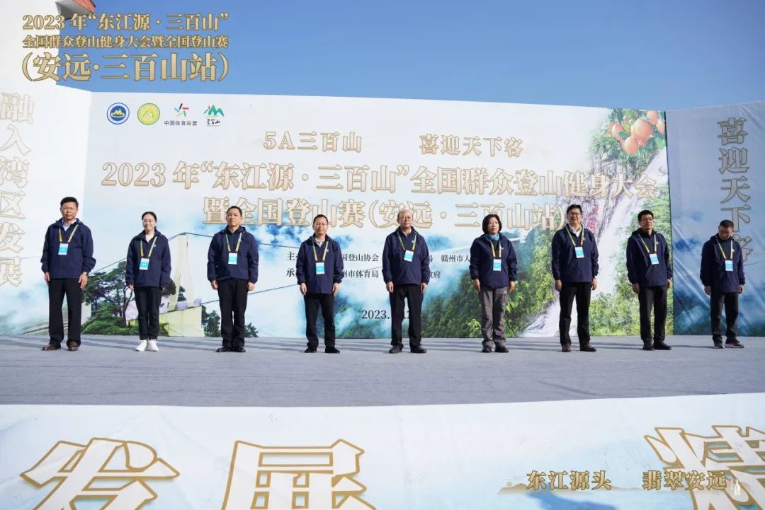 26日上午9:00,2023“东江源·三百山”全国群众登山健身大会暨全国登山赛开幕式在三百山景区主门游客服务中心隆重启幕。市委常委、政法委书记、副市长赖正文宣布比赛开始;县委书记杨有谷致辞;国家体育总局登山运动管理中心户外部主任彭爱琴,市体育局党组成员、副局长林泉,县领导罗水养、刘文丙、魏熠、林永祥、林象森出席仪式。