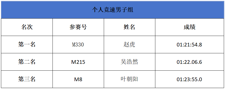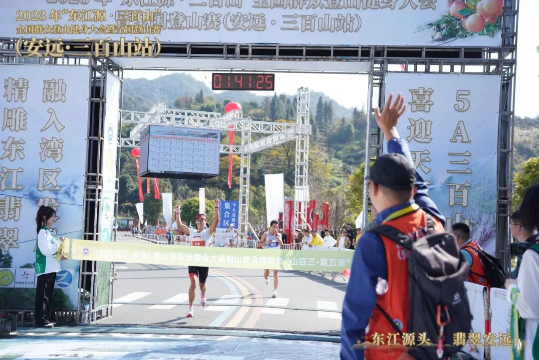 经过漫长的登山比赛,最终参赛选手赵虎,在历时1小时21分54秒成功完赛,获得男子组冠军;郑文荣历时1小时38分22秒获得女子组第一名。