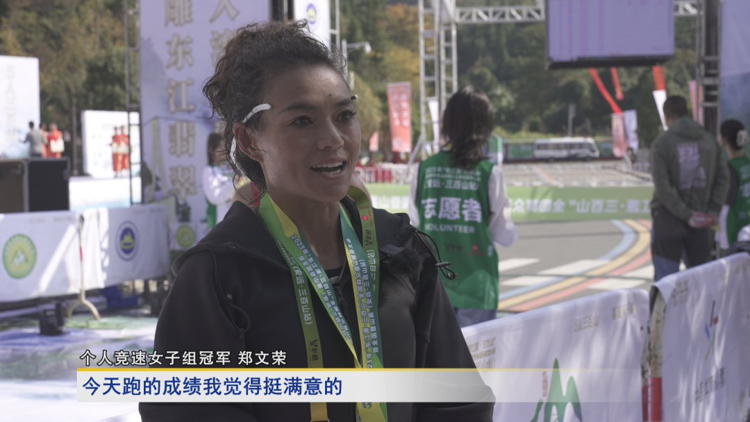 个人竞速女子组冠军 郑文荣:今天跑的成绩,我觉得挺满意的,最主要是三百山这个地方特别美,我觉得这个氛围特别好,人民特别热情,围绕三百山跑一圈我觉得特别有意义。