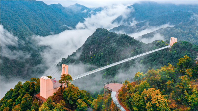 乘坐索道,俯瞰群山叠翠、溪流蜿蜒;